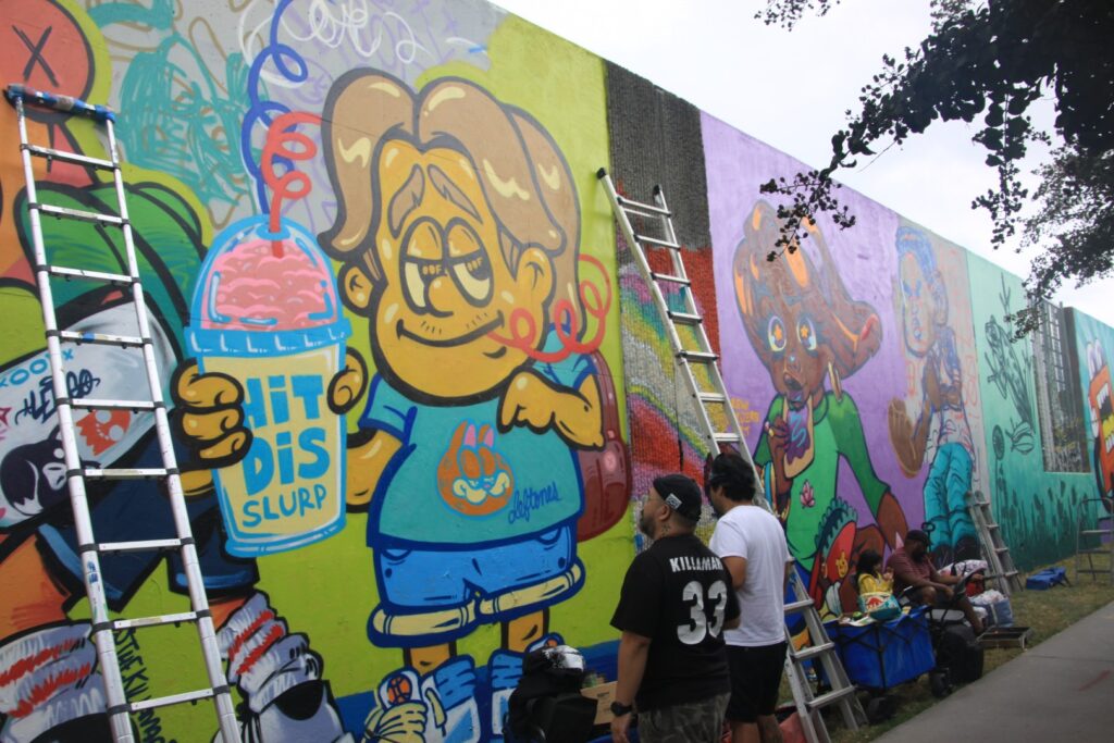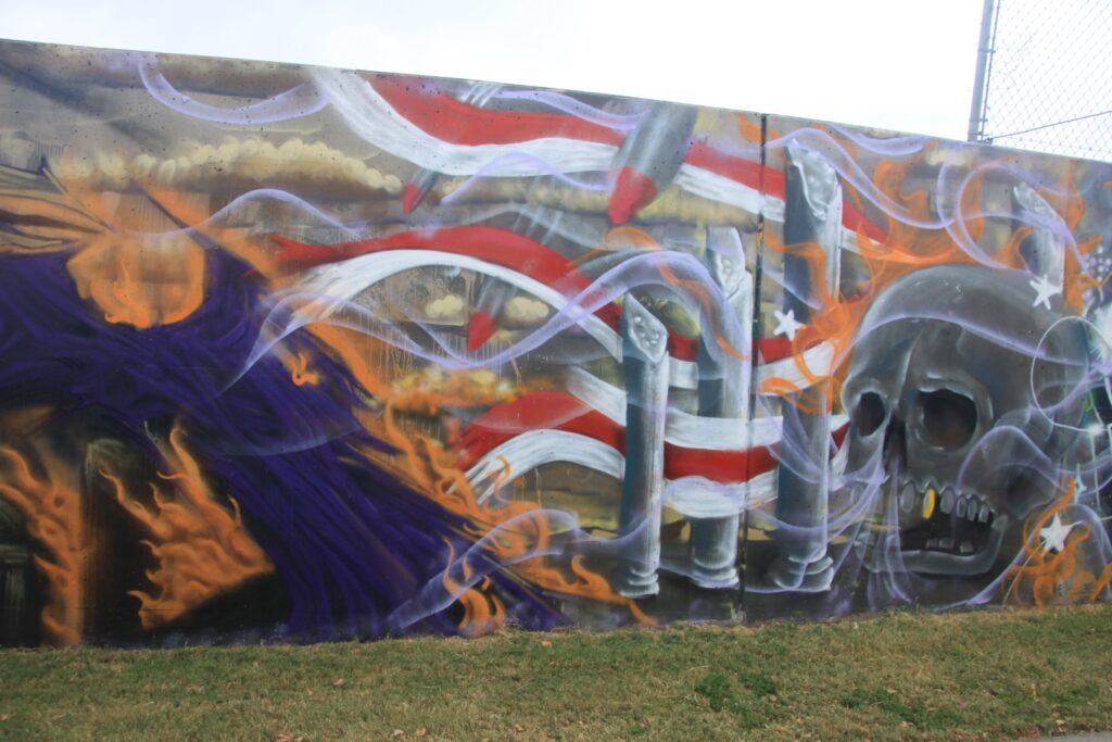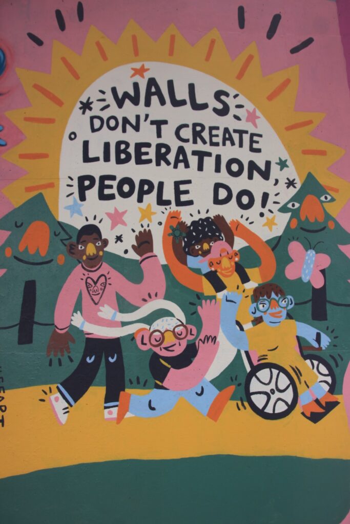 Am 2. Tag haben wir uns die Graffittis in aller Ruhe angesehen. Jedes Bild war ein Kunstwerk, keine Schmiererei. Am Samstag haben wir gesehen, dass Künstler an ihrem Bild weiterarbeiten.