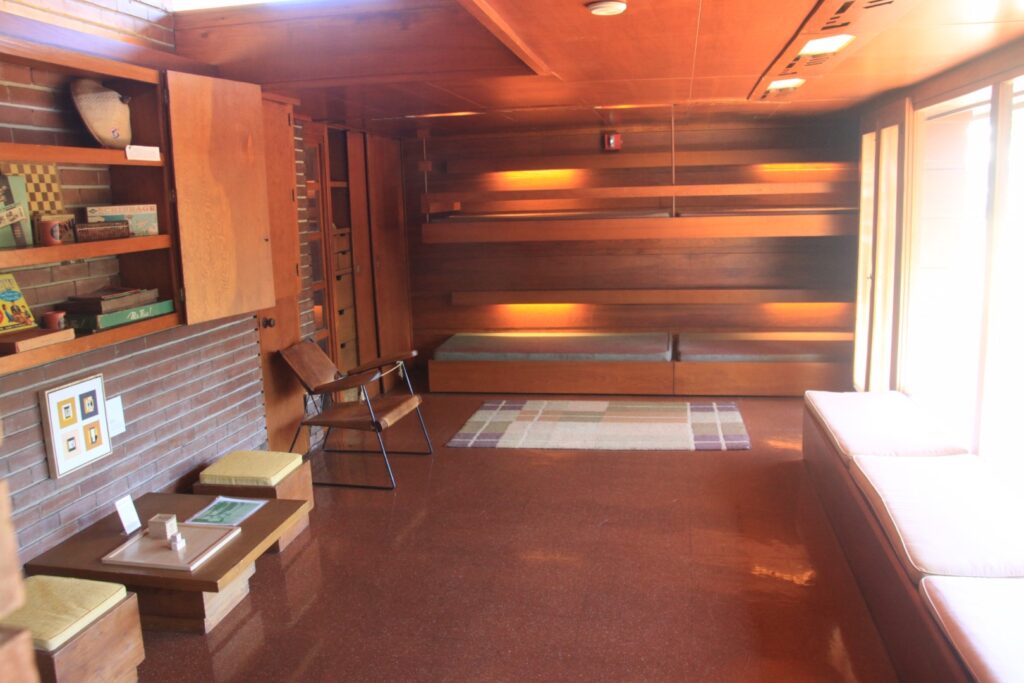 Das Rosenbaum Haus stammt vom Archtikten Frank Lloyd Wright. Das Haus ist aus Backstein, Zypresse und Schichtholz konstruiert. Es gibt fast nur die Farben ziegelrot bis dunkelbraun. Bücherregale und Schränke sind beim Bau mitgeplant. Auch die Möbel hat Wrigth entworfen. Wright war sehr erfolgreich mit seiner Usonian Architektur. Wright war einer der ersten Architekten, die den Begriff einer ‚organischen Bauweise‘ benutzten. Es ging ihm dabei um einen organischen Zusammenhang der Architektur mit den verschiedenen Elementen der Kunst, der Natur und der menschlichen Lebensbereiche. Sehr spannend.